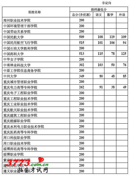 [组图]河北2012年高招专科批理科一志愿平行投档分数线