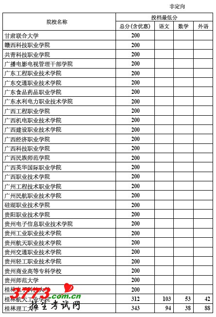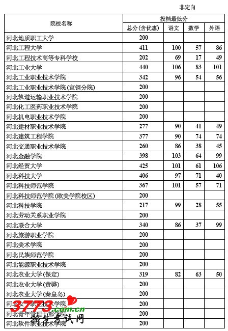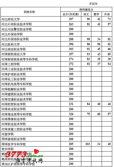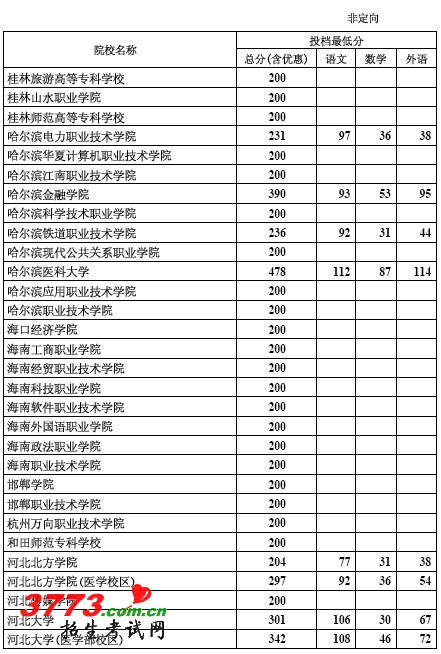 [组图]河北2012年高招专科批理科一志愿平行投档分数线