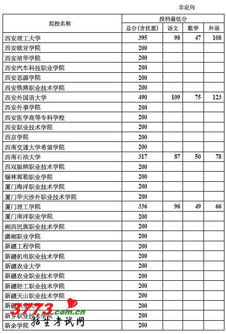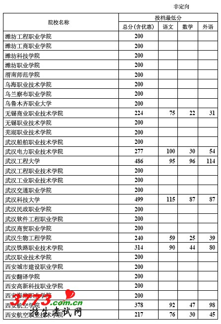 [组图]河北2012年高招专科批理科一志愿平行投档分数线