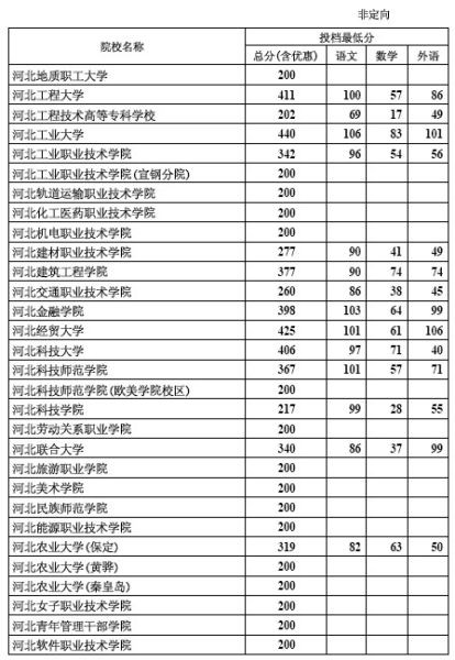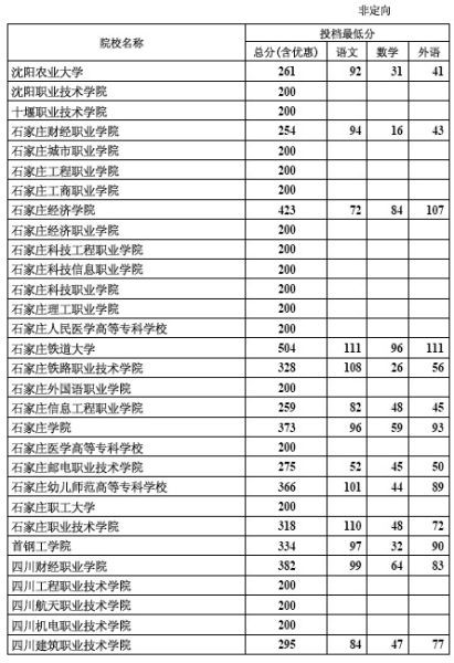 [组图]河北省2012年高招专科批理工类一志愿平行投档线