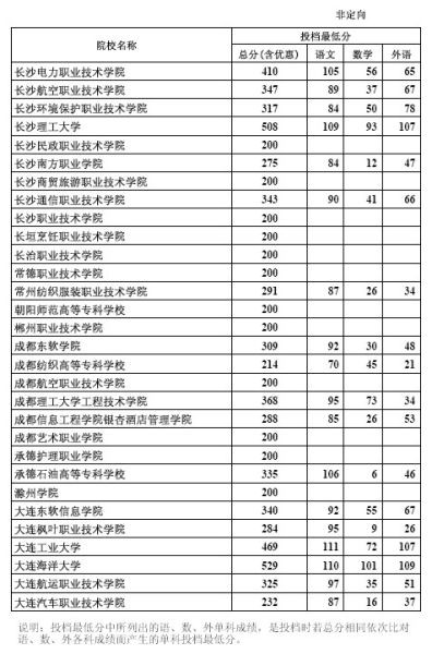 投档最低分中所列出的语、数、外单科成绩,是投档时若总分相同依次比对语、数、外各科成绩而产生的单科投档最低分。(记者殷大伟)