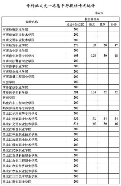 [组图]2012年河北高招专科批文史类一志愿投档分数线