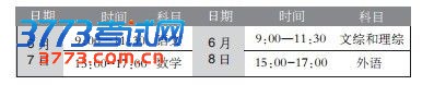 2013年河北省普通高校招生考试定于6月7日、8日两天进行。(各科目具体考试时间见下表)我市84055人参加高考,居全省之首。全市将设置考区23个,考点77个,考场2500多个,聘用工作人员超2万人。