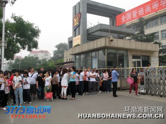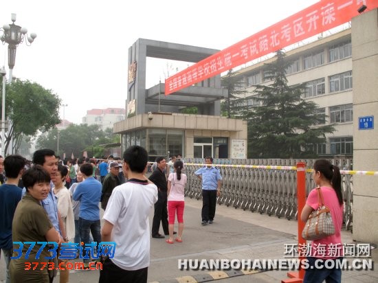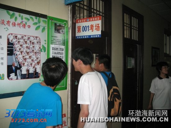 4时30分,开一考点放行。“我是6考场,你呢?”考生们结伴步入考点,开始寻找自己的考场。虽然不能进入考点实际体会,但考生们还是隔着门上的玻璃窗,找找自己的座位,在考场门前停留一会儿。唐山外国语学校的一位考生拿起手机,把考场标牌拍摄下来,“一辈子就这一回,留个纪念。”