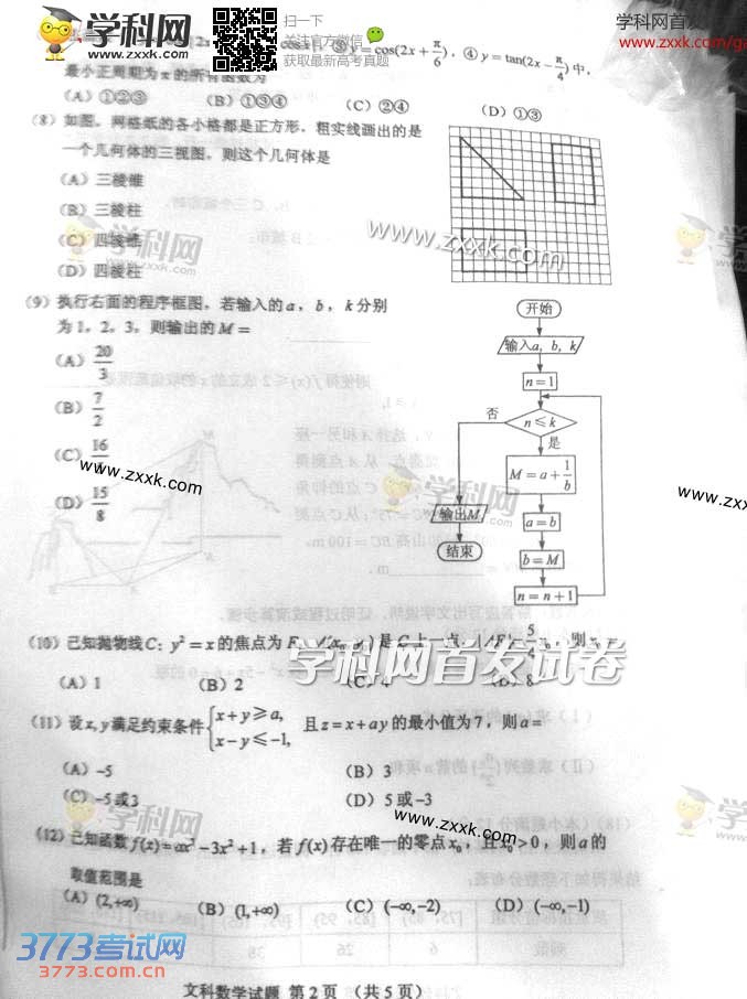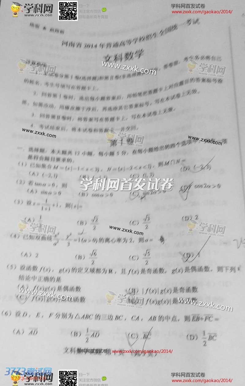 2014河南高考数学文科试题及部分答案(新课标I卷)