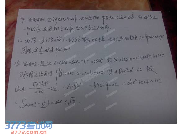 2014年高考试题——理科数学(新课标I卷)答案及解析(