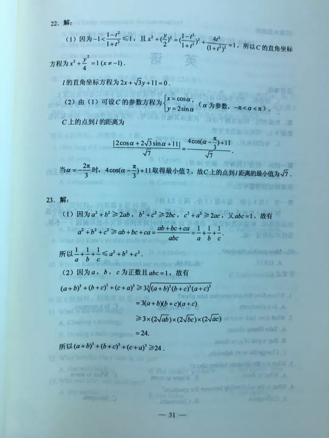 [组图]2019河南高考理科数学试题答案公布