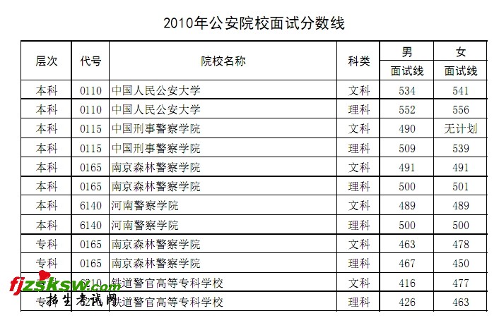 [图文]2010年河南省公安院校面试分数线
