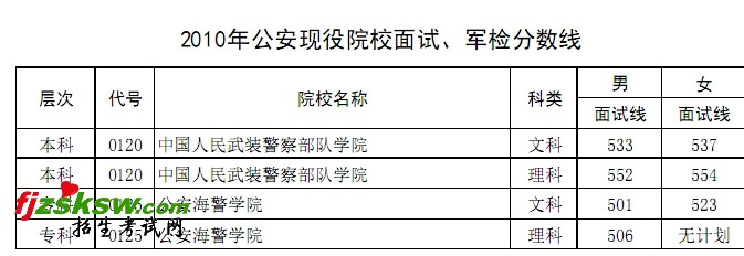 [图文]2010年河南省公安现役院校面试、军检分数线