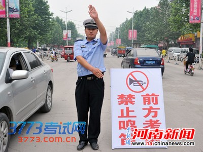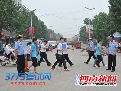 交警对考点附近区域实施交通管制。胡洪涛 摄