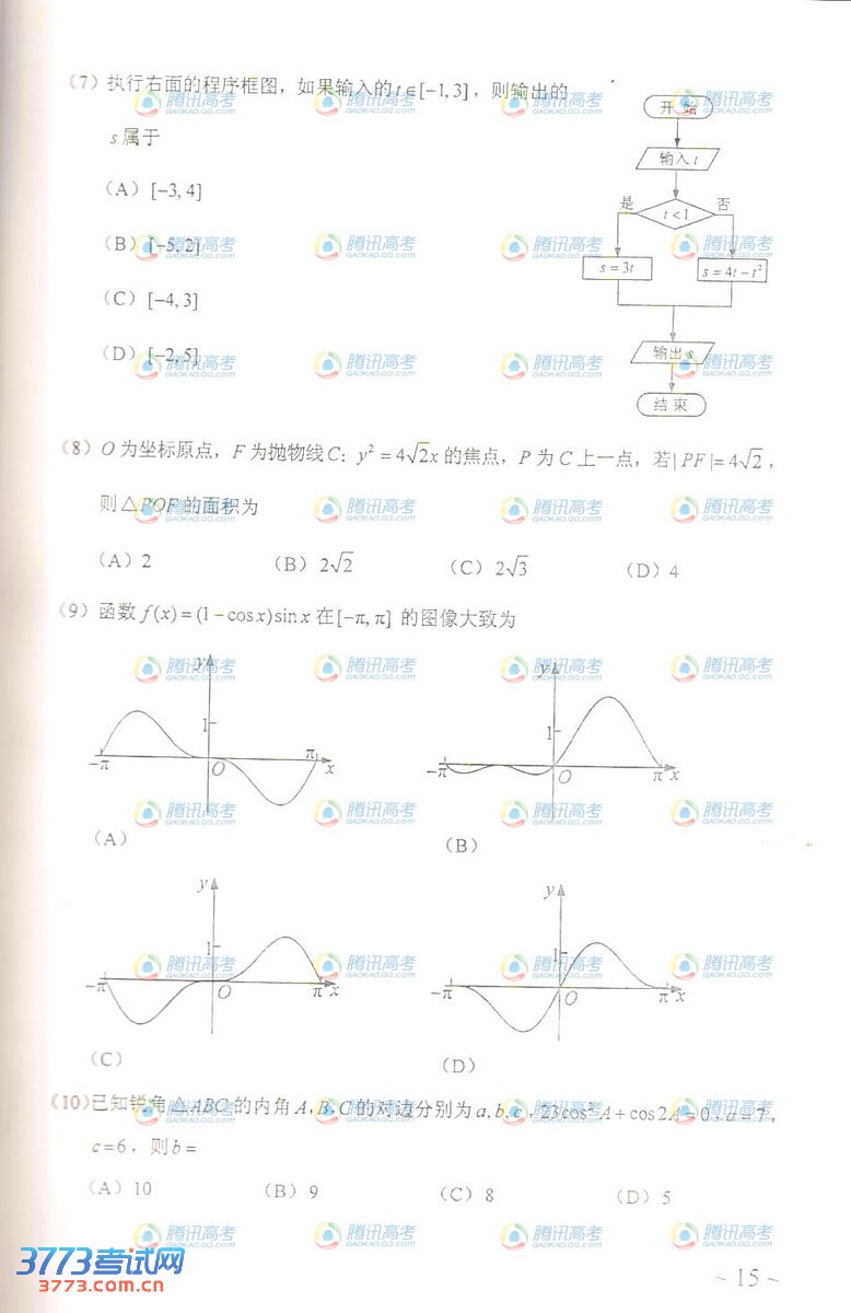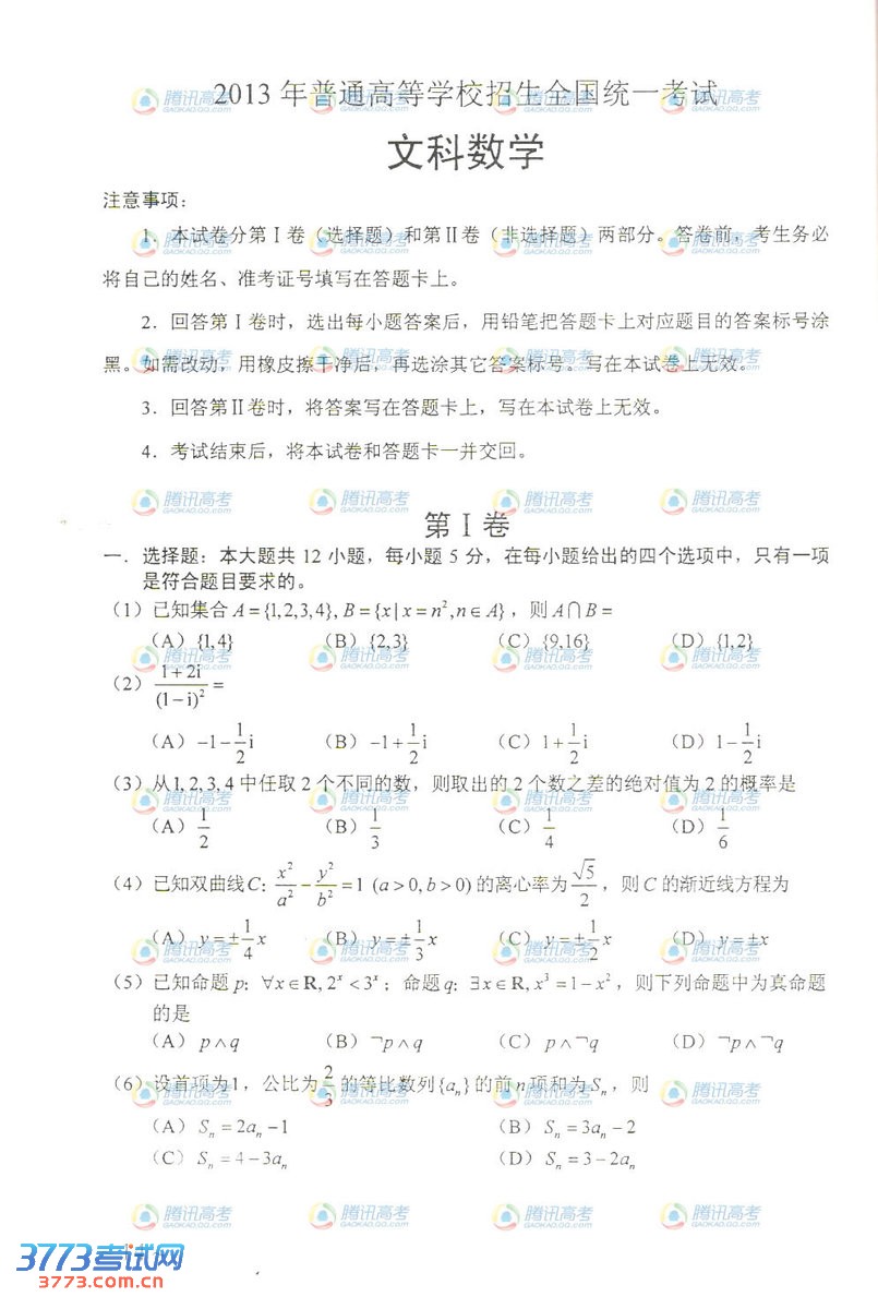 [组图]2013河南高考文科数学试题及答案(新课标1卷)