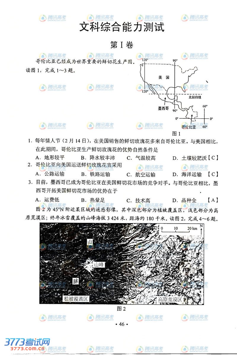 [组图]2013河南高考文综试题及答案(新课标1卷)