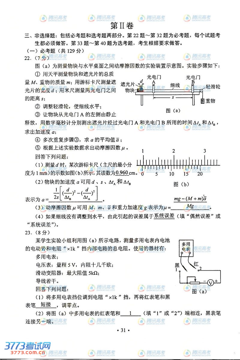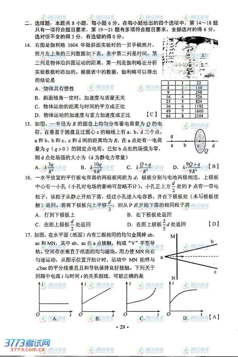 [组图]2013河南高考理综试题及答案(新课标1卷)