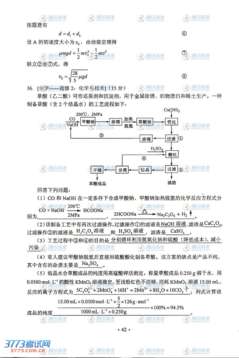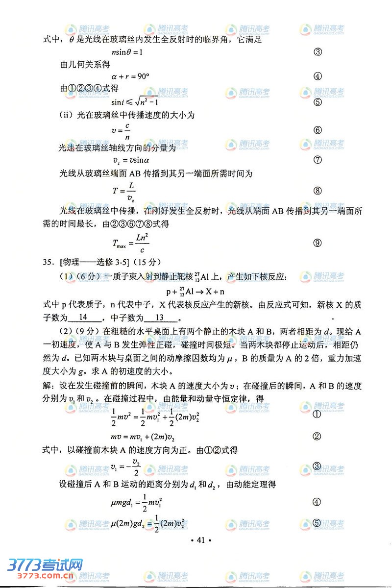 [组图]2013河南高考理综试题及答案(新课标1卷)
