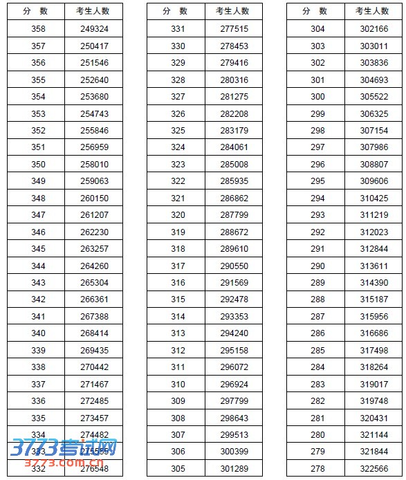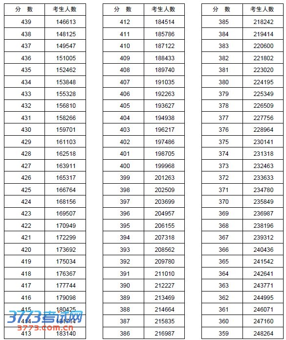 [组图]2013河南高考分数段一分一段统计表(理科)