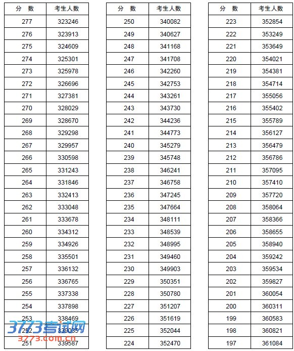[组图]2013河南高考分数段一分一段统计表(理科)
