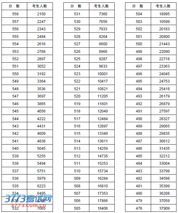 [组图]2013河南高考分数段一分一段统计表(文科)