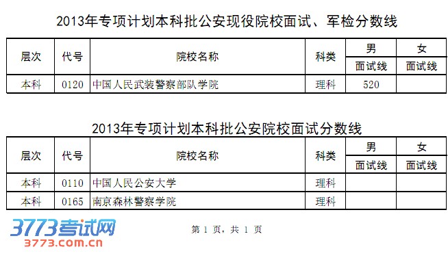 [组图]2013河南高招公安及公安现役院校面试分数线
