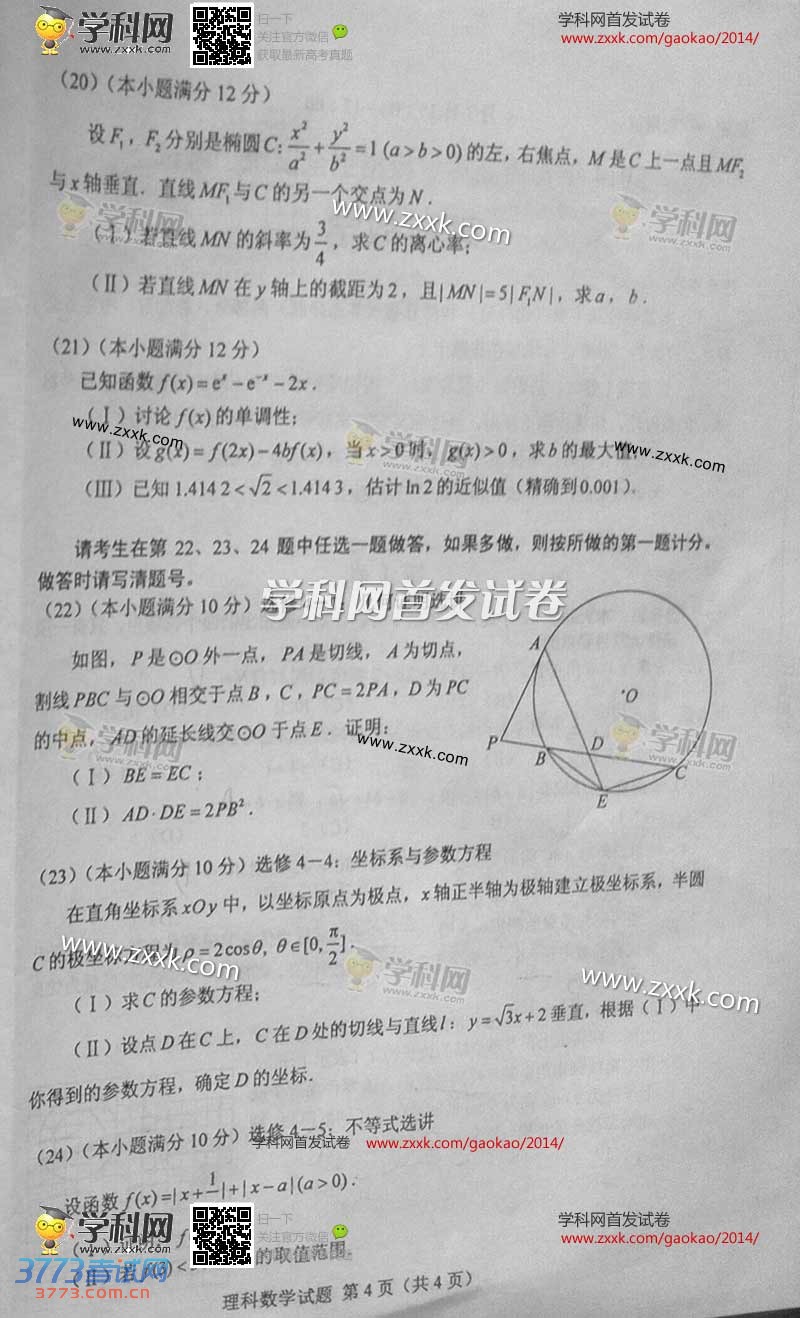 [组图]2014全国高考新课标2卷数学理科试题及部分答案