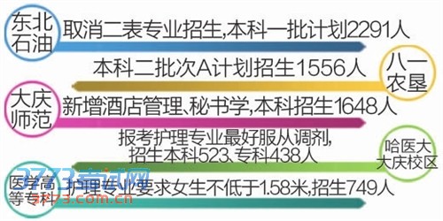 近两年来,大庆考生和家长越来越钟情本土大学。最近就有不少家长打来电话询问东北石油大学、黑龙江八一农垦大学、大庆师范学院、哈尔滨医科大学大庆校区、大庆医学高等专科学校今年的招生情况和往年的录取分数。
