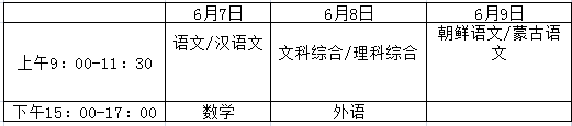 第十九条 高考的科目和考试时间,由教育部公布,考试时间如下: