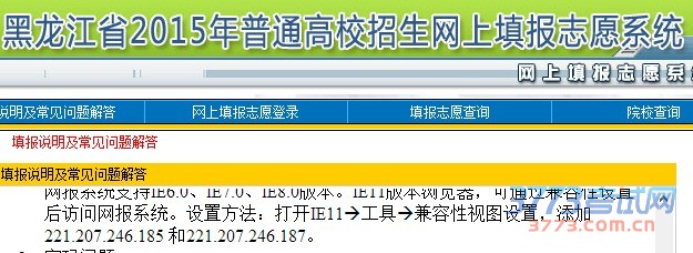 [图文]2015年黑龙江省高考网上征集志愿入口