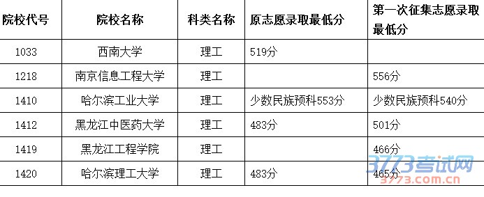 院校代号	院校名称	科类名称	原志愿录取最低分	第一次征集志愿录取最低分