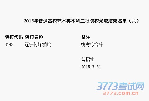 3143 辽宁传媒学院  统考综合分