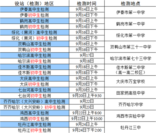 注:初选检测地点由地市教育部门根据学生报名人数确定,并负责通知当地学生按时参加初选检测。如有变化,以地市教育部门通知为准。