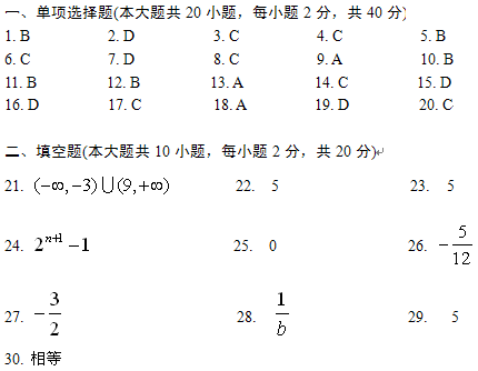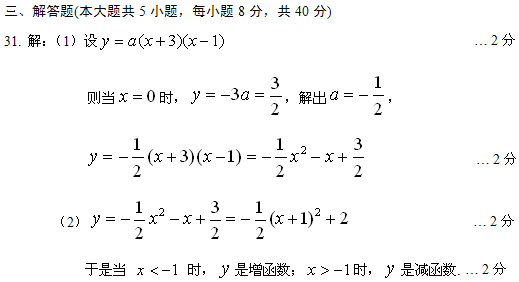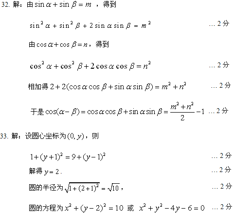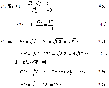 [组图]黑龙江2009年中职升高职数学试题答案及评分参考