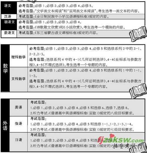 [组图]2010年黑龙江省高考各门学科考试范围已公布