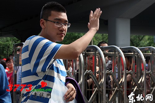 6月7日,在哈尔滨市第六中学考点的考生走进考场前与家人挥别。(资料图)