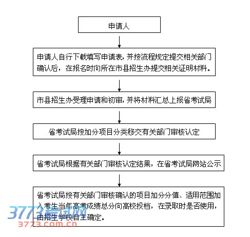 海南省普通高等学校考试招生考生享有政策加分确认工作办理流程图