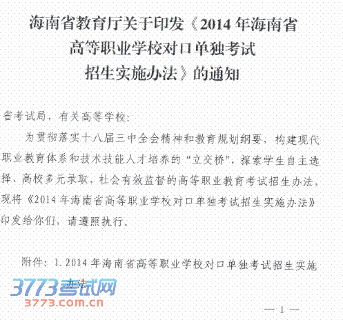 1. 2014年海南省高等职业学校对口单独考试招生实施办法