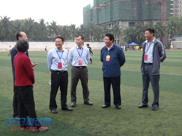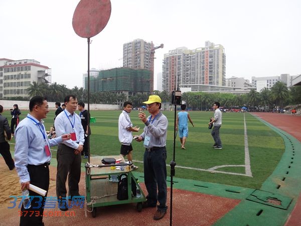 省考试局局长王贤(左一)了解素质项目100米短跑情况