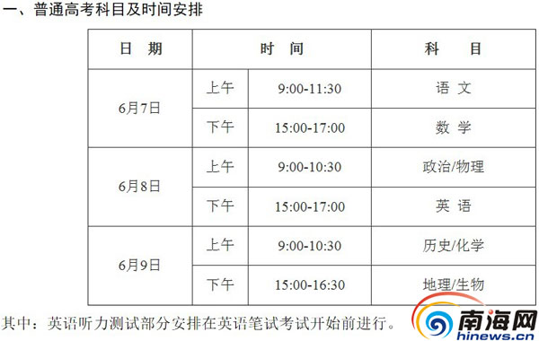 [图文]2014海南高考时间安排 英语笔试前将测试听力