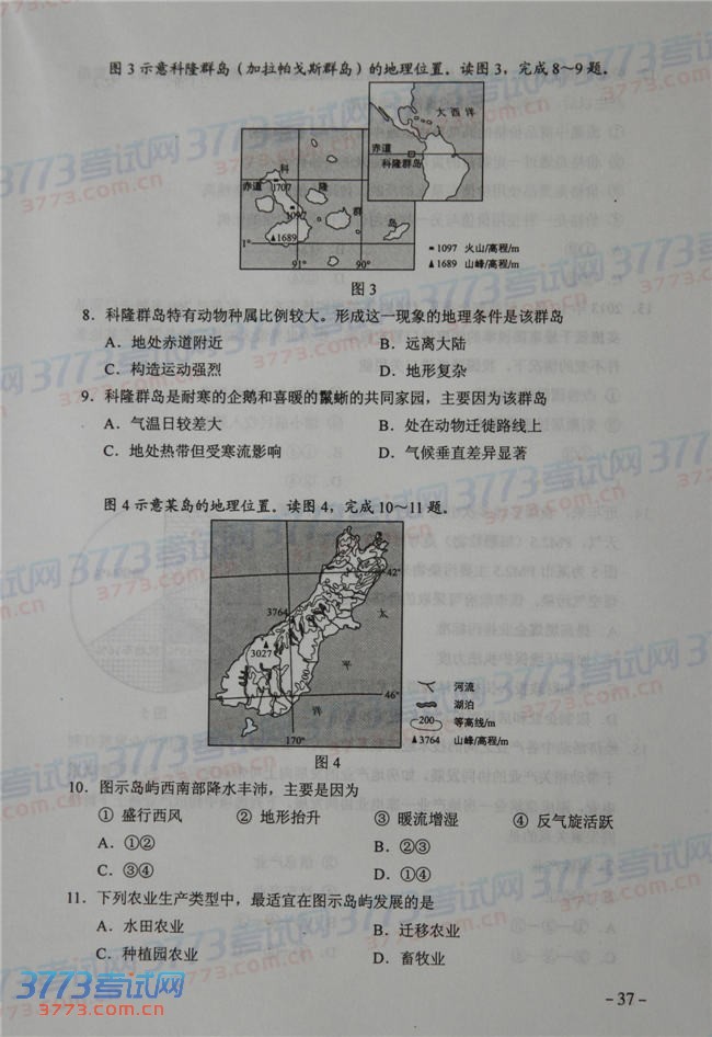 [组图]2014海南高考文综试题及答案