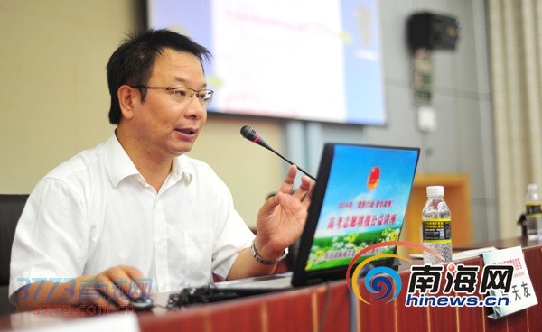 海南中学高级教师贾天友分享报考经验、技巧。(南海网记者 秦彦摄)