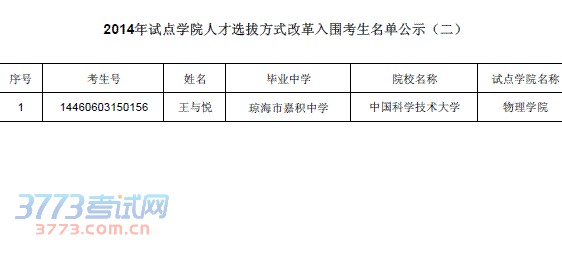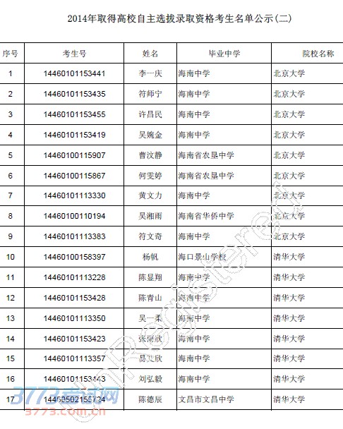 [组图]2014海南高考自主招生试点学院考生名单公示(二)