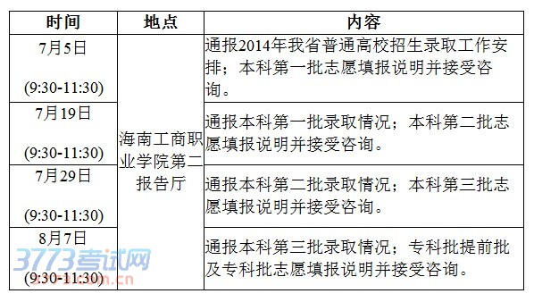 南海网海口7月3日消息(南海网记者 符玲)为深入实施高校招生“阳光工程”,帮助考生和家长提供志愿填报咨询服务,积极回应社会热点和关切问题,3日南海网记者从海南省考试局获悉,该局根据今年海南省高校招生录取工作安排,将在各批次志愿填报前一天,举行招生志愿填报说明会。