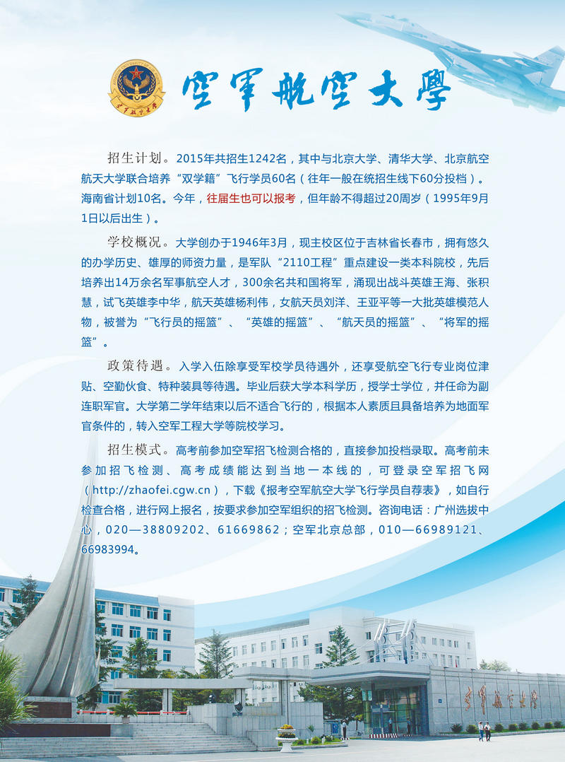 (二)预留复选学生。即:通过空军招飞初选但未参加广州复选,且高考总成绩(含各类加分)能达到一本线的学生。高考总成绩达不到一本线的,可自行选择放弃。
