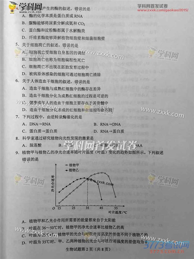 [组图]2015海南高考生物试题发布
