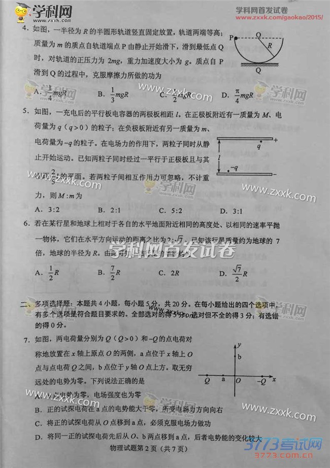 2015年海南物理高考试题及答案