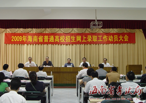 7月9日,我省2009年普通高校招生网上录取工作动员大会在省考试局召开。省教育厅党组副书记麦浪、省纠风办副主任林伟出席会议并讲话。会议由省考试局局长郑万发主持,全体录取工作人员和各市县招生办主任参加会议。