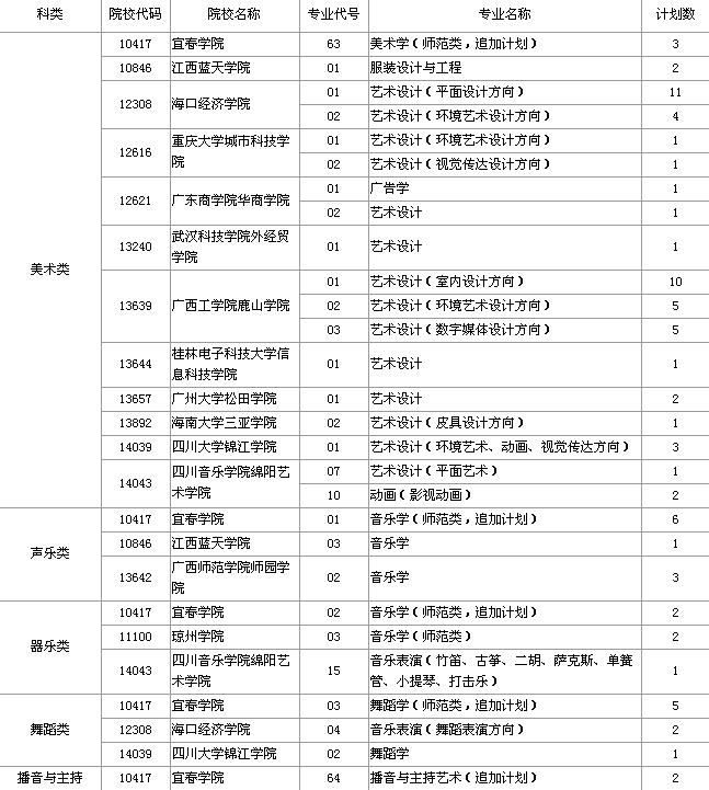 09年海南普通高招本科提前批艺术类剩余计划表