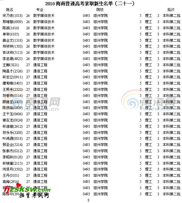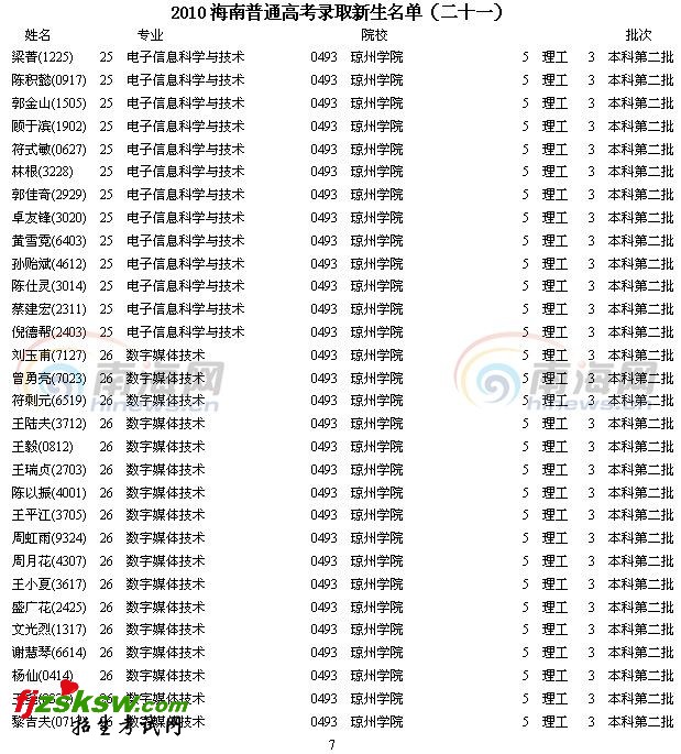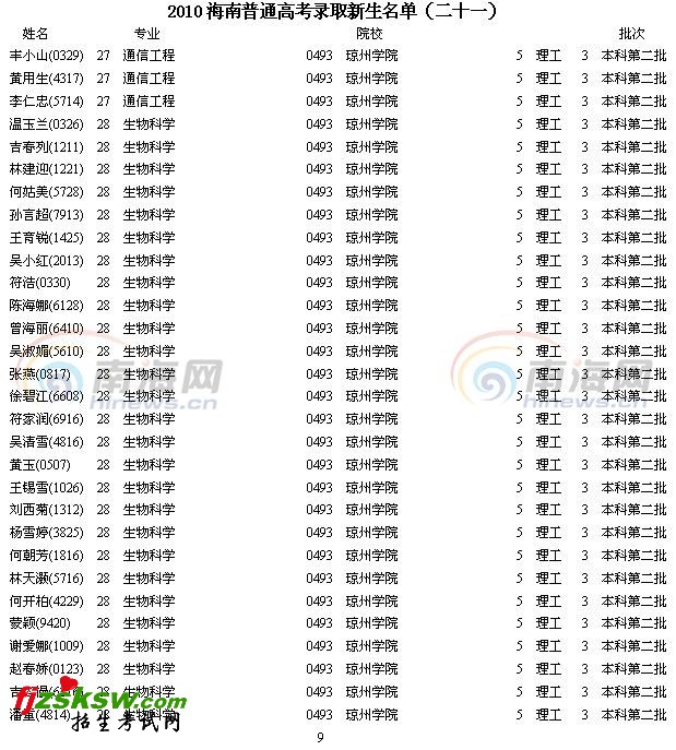 [组图]2010年海南省高考录取名单分数(二十一)