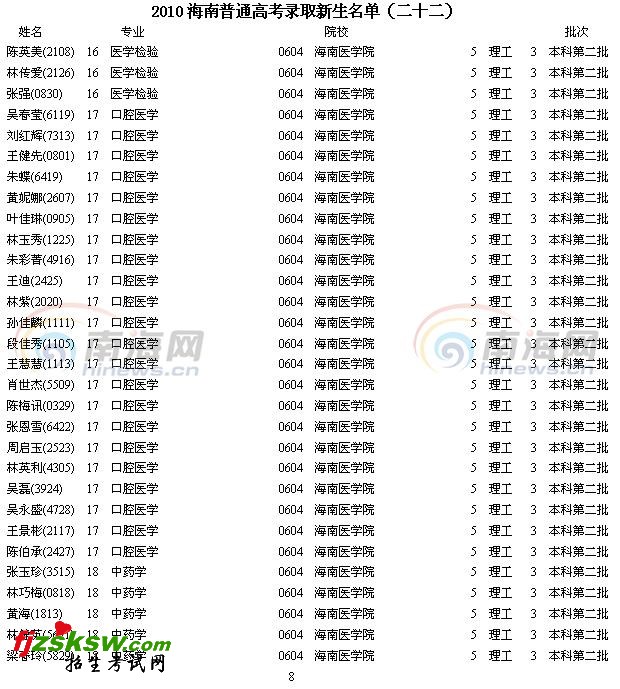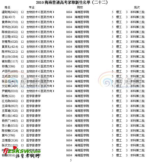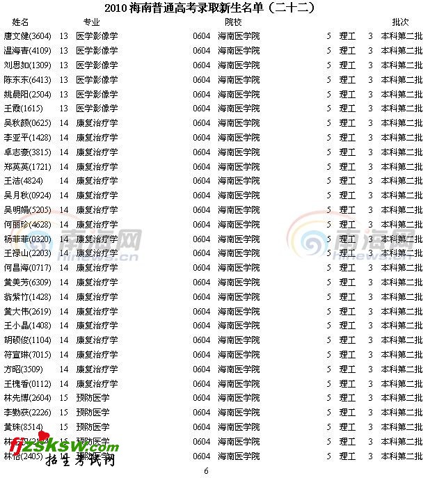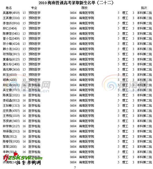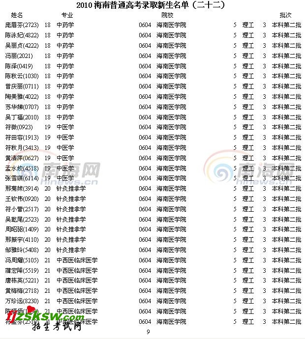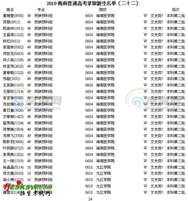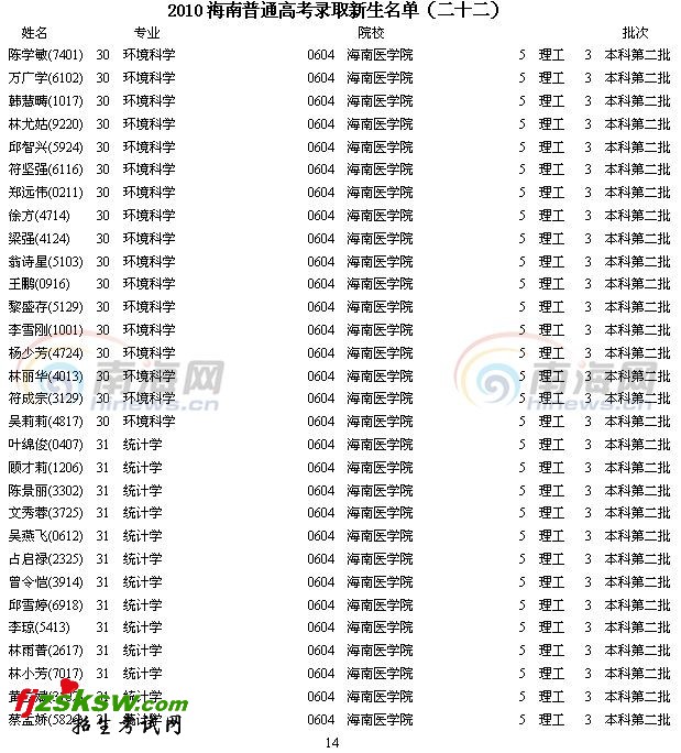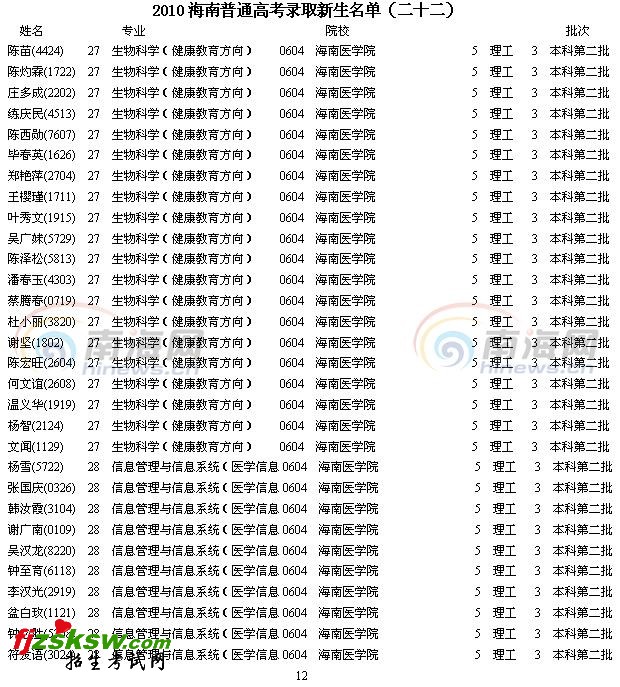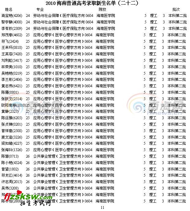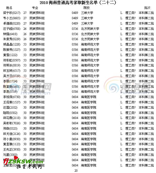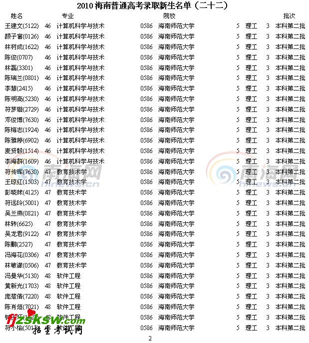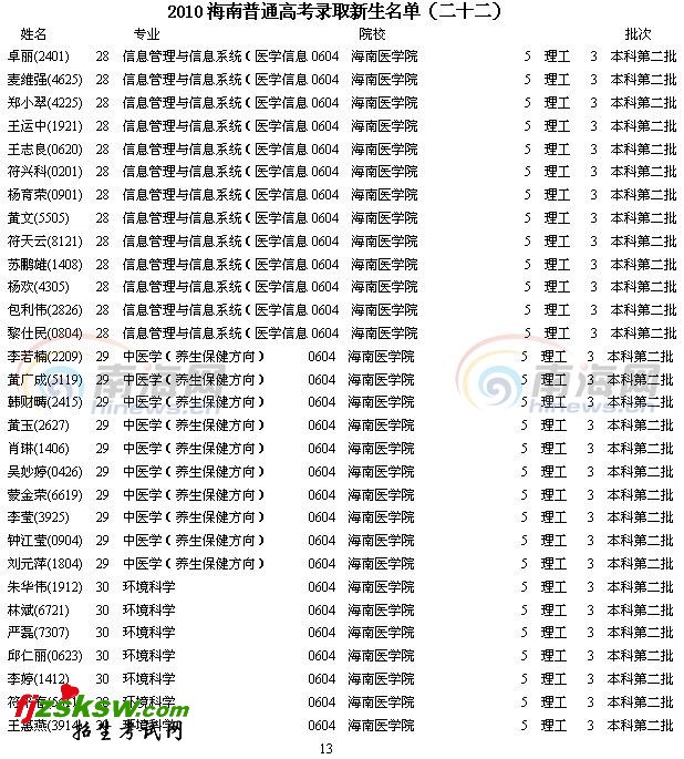 2010年海南省高考录取名单已经开始由海南省考试局陆续公布,今天公布的是2010年海南省普通高考录取新生名单(二十二)详情请点进南海网2010高考专题,即可查询。
