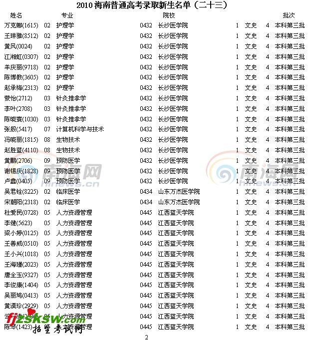 南海网8月7日消息:2010年海南省高考录取名单已经开始由海南省考试局陆续公布,今天公布的是2010年海南省普通高考录取新生名单(二十三)。详情请点进南海网2010高考专题,即可查询。