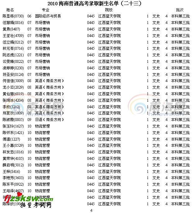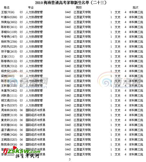 [组图]2010海南高考录取新生名单(二十三)