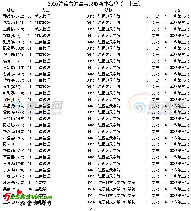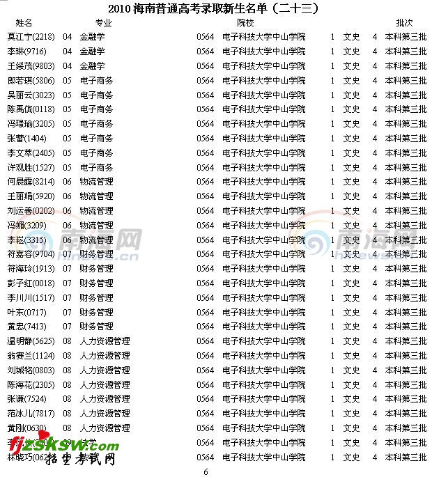 [组图]2010海南高考录取新生名单(二十三)
